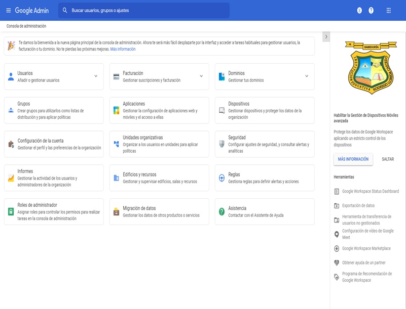 Implementación, administración, capacitación, soporte y alquiler de Herramientas de Trabajo Colaborativo como la Suite de Google, Zoom y Teams, permitiendo acceder a ciertos servicios Como Correo Electrónico Institucional, Calendario, Clases en Vivo, Video Conferencias, Chat, Unidad de Almacenamiento en la Nube, Procesador de Texto en línea, Hojas de Cálculo en Línea, Diapositivas en Línea, Formularios, que facilitan a los usuarios comunicarse y trabajar conjuntamente, sin importar en el lugar que se encuentren.